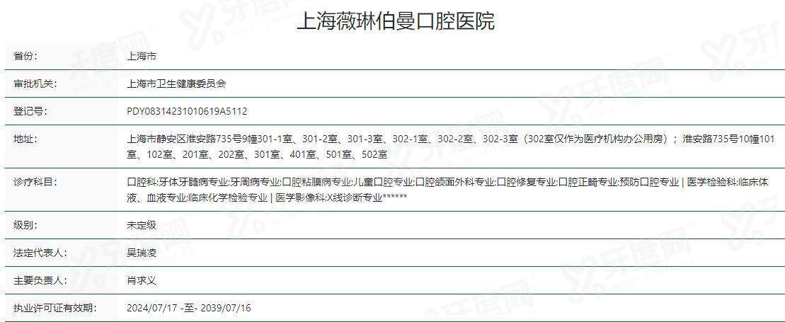 1、上海薇琳伯曼口腔医院是经上海市卫生健康委员会批准设立,持有《医疗机构执业许可证》,具备开展口腔诊疗的合法资质,是成立于2023年,占地面积超过3000平方米,拥有约30张牙椅,是一所规模较大的专科医院,是属于中高端私立口腔医院,注重服务体验与私密环境。